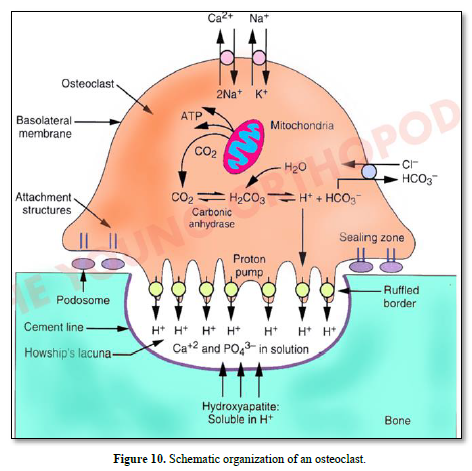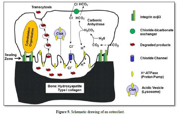 Osteoclast possess both acid excretion exchanges and the apical proton pump V-ATPase Na+/H+ (Figure 12).