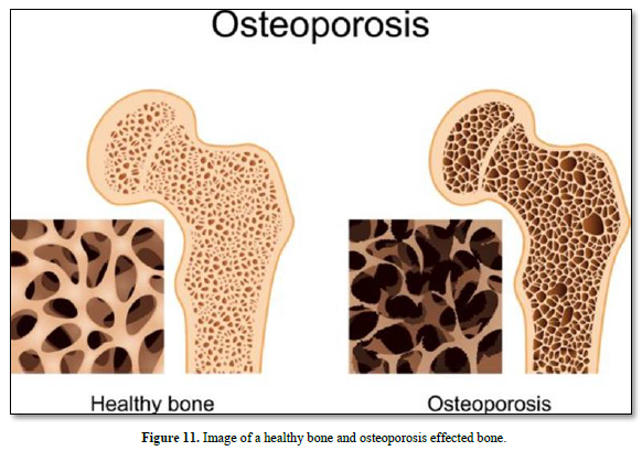 The disease increases in women after age 55 years and men after 65 years. Osteoporosis means “porous bone”. There is an increased non-modifiable risk of falls. However, bone may be potentially modifiable: alcohol and tobacco may prevent osteoporosis (Figure 11).