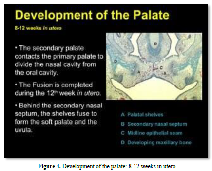 Meckel’s cartilage constitutes the initial structure of the mandible. A series of cartilages (coronoid, condylar; angular) are the initial places of endochondral mineralization. Membranous ossification is the other mode of mineralization, leading to mandibular formation and mineralization (Figures 2-4).