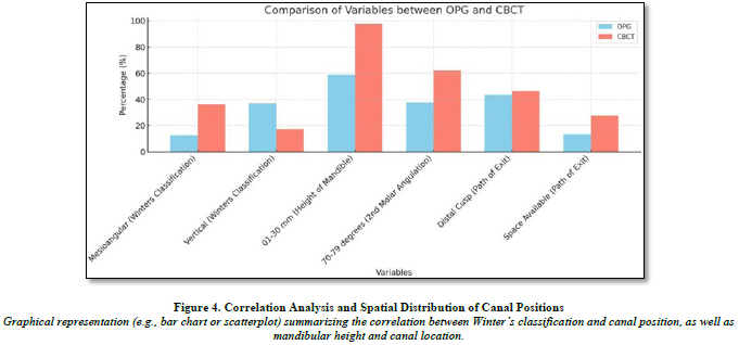 Methods: The study compared OPG & CBCT images from 254 individuals aged 18-45 years with unilateral or bilateral mandibular third molar impaction, was evaluated for the effectiveness in identifying key parameters, including mandibular height, second molar angulation, and canal placement.