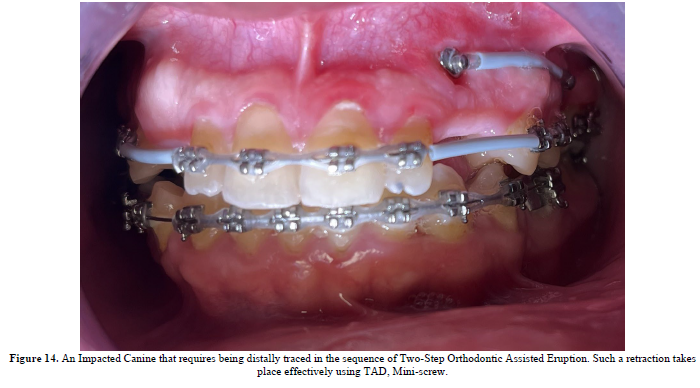 Bearing the whole burden of the traction forces placates the aftermaths of the existence of the impacted dental unit(s), dwindles such negative consequences into zero (Figure 14).