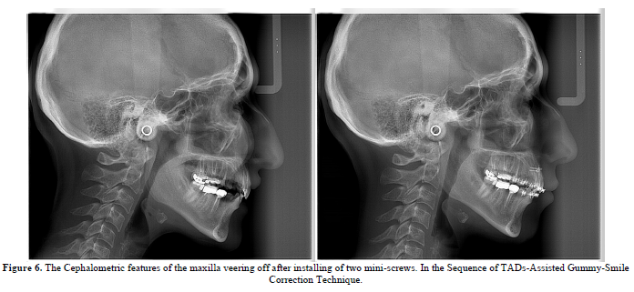 Nonetheless, the clinical aspects support the TADs wielded Gummy-Smile Corrections (Figure 7).