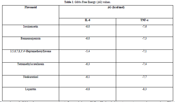 Effectiveness of Flavonoid Compounds from Molecular Docking in Inhibiting IL-6 and TNF-α