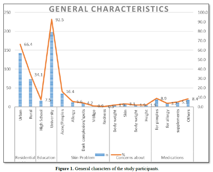 There were 214 young women between the ages of 17-33 years who consented to participate in this study, the mean age was 20.4 ± 1.9 years. The mean age at which our study group started using cosmetics was 11.9 years, some of them had started as early as 4 years. On an average they have been using cosmetics for 5 years (Figure 1). The women were literate; 92% were in university and the rest had education till high school. There were more urban dwellers (66.4%) than rural (Figure 2). The major skin ailment among them were acne (16.4%) and skin allergies (5.4%). The most common cosmetics used were soap, face wash and shampoo (Figures 3-5), some of which were on daily basis. They used cosmetics on lip, eyes and nails occasionally (Figure 6). The single most common factor in choosing a cosmetic was its brand, followed by ingredients, and recommendation from friends and professionals (Figure 7). During the interview/ questionnaire-based study, most of the study population were made aware that there is a possibility of heavy metal contamination in cosmetics and though they were not sure (responded as ‘may be’) of the toxic levels and metabolism of heavy metals, they wanted to know more (about 55% of the respondents) about it (Figure 8). They were not definite about the precautions to be observed while applying and removing make up. The curiosity generated was palpable as 62% and 69% were definite (responded ‘yes’) about knowing Lead levels in their blood and in cosmetics respectively. There was no correlation (not shown) of education with the knowledge and perception about toxic contaminants in cosmetics. Our study population were young (mean age of 20.4 years) and educated (high school and university) which must have caused a bias in the results. The inclusion of older age and school going children would have given a wider perception and insight about the level of awareness of women in the other ages and whether their level of education affected the knowledge about our study topic.