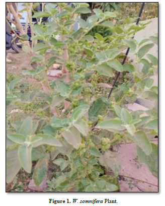 In current, the silver nanoparticles (AgNPs) have received a significant interest from many researchers and scientist those working on different disciplines due to their specific features and a broad spectrum of implementation [3] for occurrence, in food science, medical, agriculture, and agricultural technologies [4] Previous studies have reported that AgNPs have significant antimicrobial activities against Escherichia coli, Staphylococcus aureus, and Serratia marcescens [5]. It also reported that antinematodes, anti-viral anti-cancer and anti-inflammatory effects [6-9]. Ashwagandha (Withania somnifera, fam. Solanaceae) is widely known as “Indian Winter cherry” or “Indian Ginseng”. It is one of the most valuable herbs of Ayurveda (the traditional system of medicine in India) used for millennia as a Rasayana for its broad ranging health therapeutic. Rasayana is described as an herbal or metallic preparation that enhances a youthful state of physical and mental health and increases happiness [10]. Types of therapy are given to small children as tonics, and are also given by the middle-aged and elderly to enhance longevity. Among the ayurvedic Rasayana herbs, it was also exhibit useful in neurodegenerative diseases such as Parkinson’s, Huntington’s and Alzeimer’s diseases.