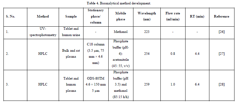 Evaluation and interpretation of bioequivalence, PK, and toxicokinetic studies are greatly aided by bioanalysis, which is used to quantify medicines and their metabolites in biological fluids. For pre-clinical and/or biopharmaceutics and clinical pharmacology studies to be effective, sensitive and selective analytical techniques for the quantitative assessment of medications and their metabolites are essential [25] (Table 4).