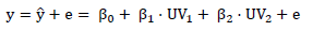 The following formula describes multiple regression with two predictors mathematically: