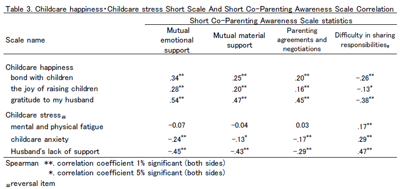 Relationship between the Short Co-parenting Awareness Scale and the Childcare Happiness Short Scale and Childcare Stress Short Scale