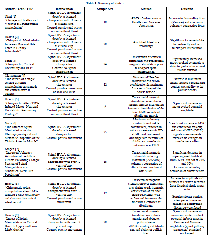 Keywords: Spinal manipulation, Chiropractic, HVLA manipulation, Cortical drive, Brain function, Joint manipulation