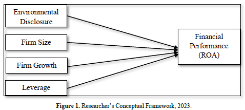 Arumona [13] examined the effect of Environmental Disclosure on Financial Performance of quoted oil and gas companies in Nigeria, using panel series data and regression analysis approach. The secondary data obtained from the annual reports of 12 oil and gas companies quoted on the floor of the Nigeria Stock Exchange (NSE) for 10 years ranging from year 2010- 2019 were used. The study adopted the E-view as a statistical tool for analysis with focus on Ordinary Least Square (OLS) regression method. The study found that Environmental Disclosure has positive and statistically significant effect on Financial Performance of quoted oil and gas companies in Nigeria during the period under review. The study concludes that Environmental Disclosures contribute immensely to Nigeria’s Oil and Gas firms to increase financial performance and profitability, as well as provide a springboard that can enable the country at large to emerge as an environmental-friendly nation. Although they focused on the oil and gas sector, the variables used were few compared to the present studies that combined firm attributes and environmental disclosure as variables. This would therefor provide robust findings.
