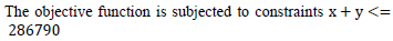 The constraints state that the maximum yield generated from both irrigation systems should not exceeds 286790 as it shown by equation given below