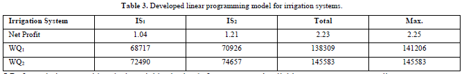 The LP formulation considered the yield obtained from different water quality and irrigation system as decision variables.