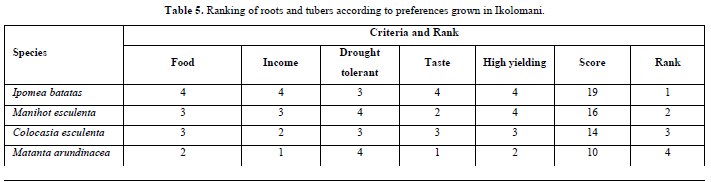 Preference and Ranking of Indigenous Roots and Tubers