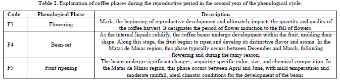 The influence of different coffee phenological phases was examined, with each phase being associated with specific climatic conditions (Table 2).