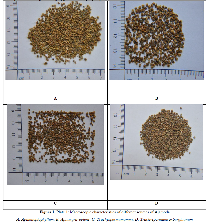 For the preparation of any Ayurvedic formulation, the correct identity of the drug is crucial; if the identity goes wrong, the efficacy of the preparation will lead to low therapeutic value or could even result in adverse drug interaction. Therefore, the current paper reports the results of a comparative study on all four sources of Ajmoda to assist in accurate botanical identification from fruits.
